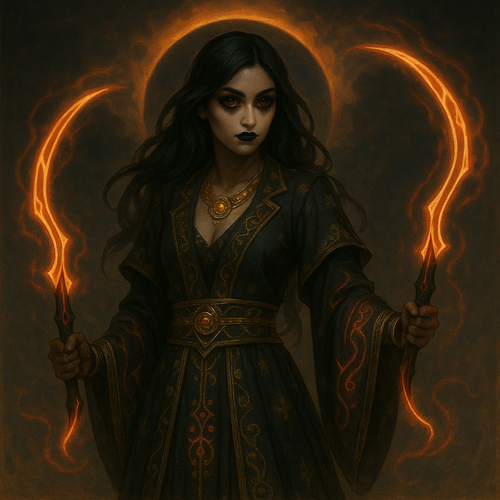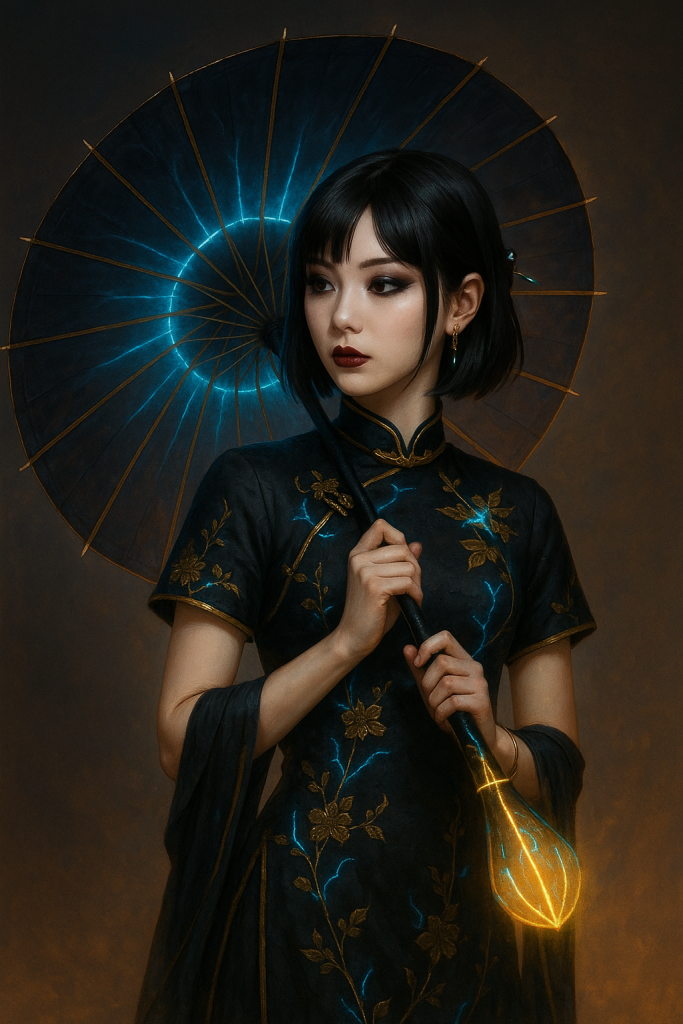 A gothic Tang-inspired warrior whose elegance conceals lethal precision. Mei is the embodiment of aerial grace and divine restraint — every motion deliberate, every detail echoing celestial craftsmanship. Her appearance channels the ethereal refinement of imperial fashion, refracted through the cold light of the eclipse.